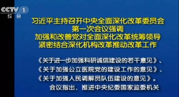3月28日,新闻联播报道,主席主持召开“中央全面深化改革委员会第一次会议”。他强调,深化党和国家机构改革全面启动,标志着全面深化改革进入了一个新阶段。