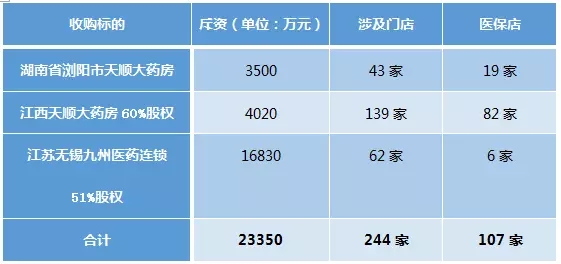 据益丰的公告显示,此轮收购的手笔不小,共投入23350万元,收购了三家连锁: