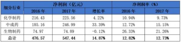 中成药由于2016-2017年多项政策打压,但是一些制药企业如丽珠制药由于财务统计关系,2017年卖掉了一块地,致使企业净利增长几倍,带动整个细分类别净利增速和净利润率有所提升。即使剔除丽珠集团财务统计因素,但中成药行业整体而言向来就是高利润行业,正所谓“瘦死骆驼比马大”,也可以维持在10%以上。