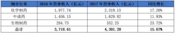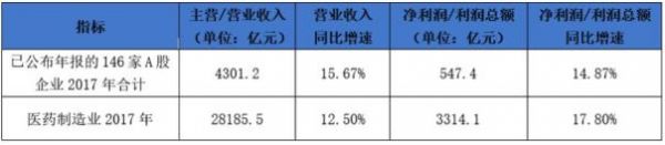 目前我国A股中成药、生物制药和化学制药(含原料药)上市交易的医药工业企业约200家。截至4月1日,根据同花顺等网站总结发现已有146家公布了年报。汇总这些企业的业绩来看,这些企业合计业务收入和净利润较2016年均同比增长15%左右,同比上一年的增速有所提高。