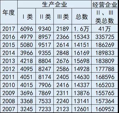 而在经过了2015年的暴跌、2016年的恢复增长后,全国实有械企的总数量在2017年度又恢复到了2014年的高峰水平。