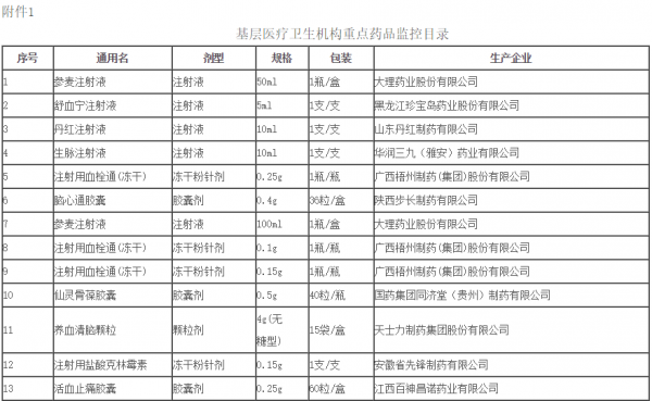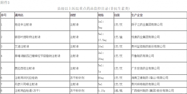2017年7月25日,安徽省公布重点药品监控目录。并要求:
