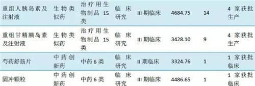 注:重组甘精胰岛素及注射液的已申报厂家数量中2家进入申报生产阶段