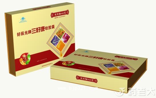 好辰光牌ω-36E度三籽康软胶囊是以富含亚麻酸的紫苏籽油,富含亚麻酸、亚油酸和维生素E的沙棘籽油,富含亚油酸和维生素的葡萄籽油为主要原料,按黄金配比科学配伍,研发出的具有辅助降血脂、呵护心脑、养护肝脏的保健佳品。