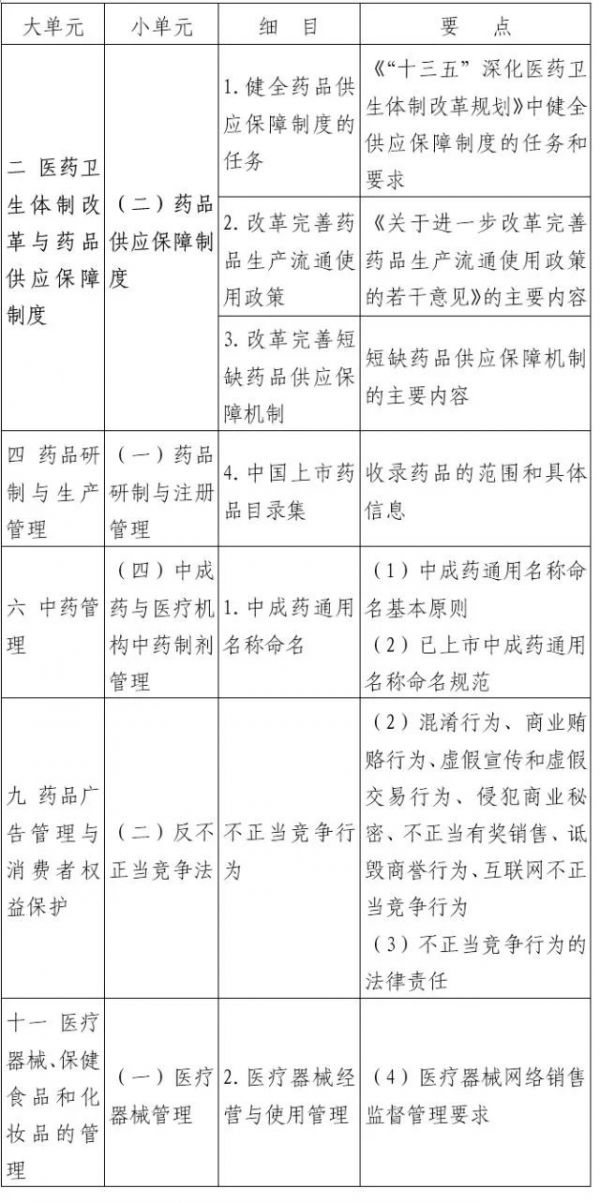 一、《大纲》中药事管理与法规科目细目和要点的考试内容,涉及下述新政策法规的,按照新政策法规的规定掌握