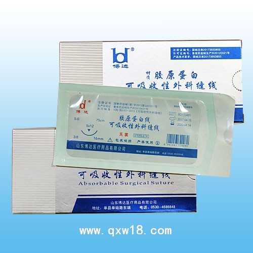 可吸收胶原蛋白缝合线,批准文号:国食药械(准)字2013第3651811号,医疗器械招商企业山东博达医疗用品股份有限公司招商产品。可吸收胶原蛋白缝合线招商详情请进入>>