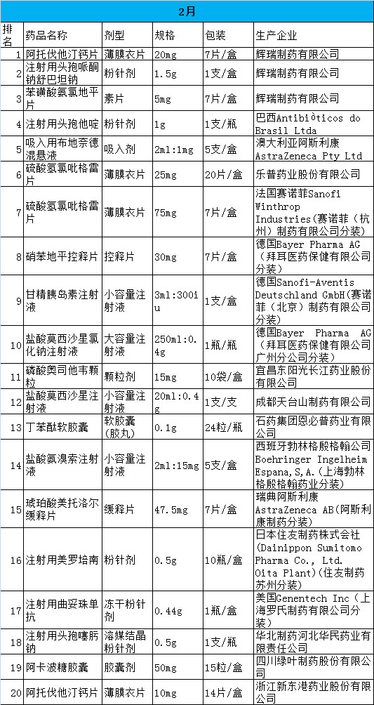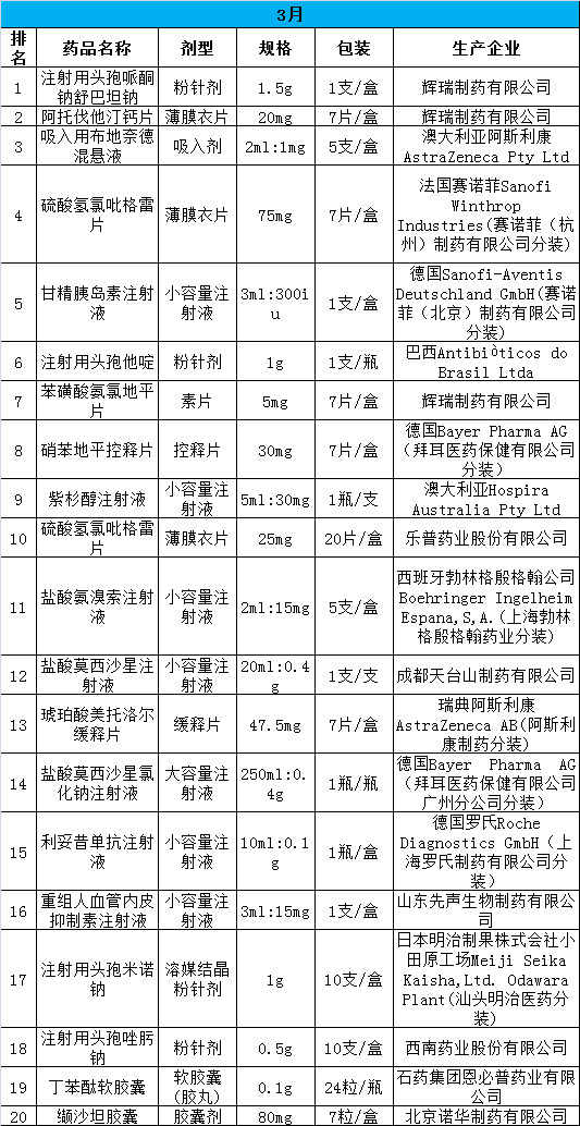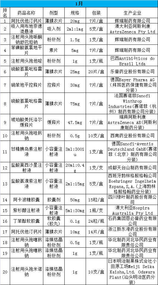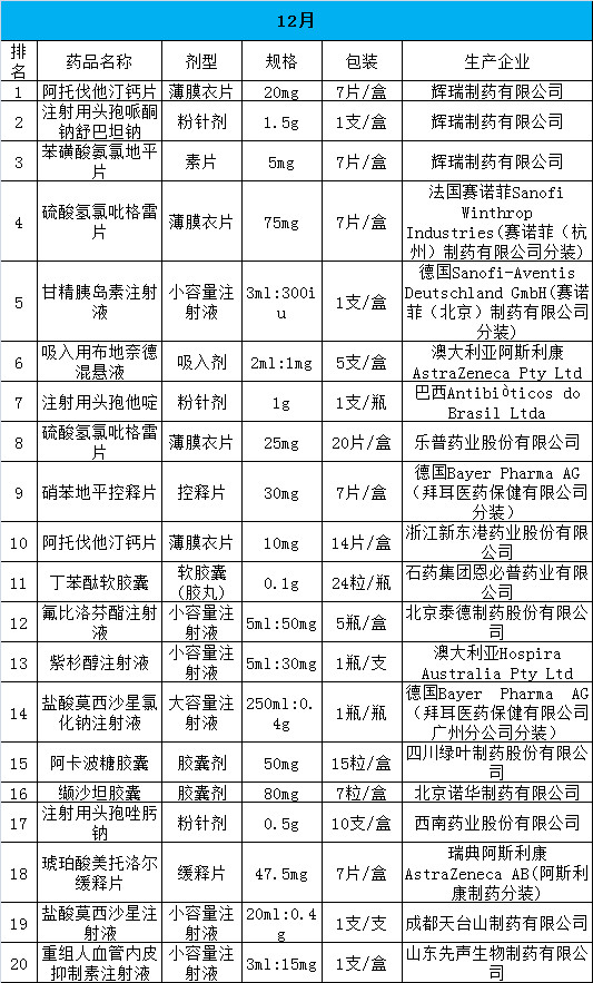 昨日(4月19日),福建省药械联合限价采购网公布了最近4个月(12月-4月)的药品采购销售金额排名前20名单。