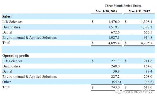 2018年Q1,丹纳赫 继续保持其高增长,营收46.95亿美元,同比+11.6%。生命科学、诊断、环境应用均获得了超12%的增长。