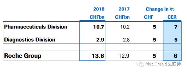 罗氏2018年Q1营收136亿瑞郎,同比+6%。