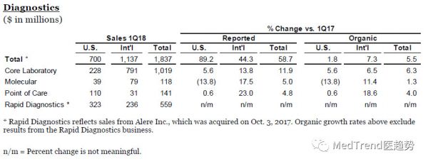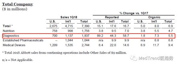 雅培:Q1通过收购带来58.7%的高增长,雅培重回IVD第二。