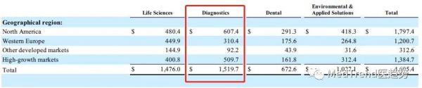 北美:丹纳赫诊断业务第一大市场,贡献6.07亿美元营收,占诊断业务的40%;