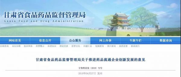 近日,甘肃省食药监局发布《关于推进药品流通企业创新发展的意见》。
