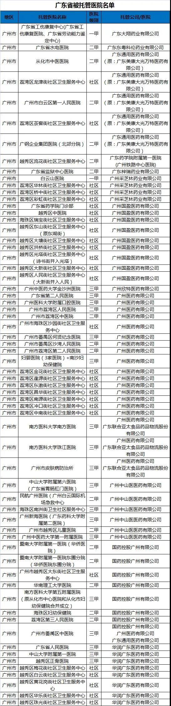 最后,附上此前网络流传广东最新的医院药房托管名单,信息或与实际有所出入,欢迎各位指正。同时,如有其它省份的医院药房托管名单,欢迎留言补充。
