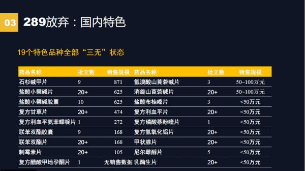 仿制药一致性评价时间紧、任务重,除了市场前景可观、具备竞争优势的当家品种外,有些289目录的品种,如国内特色三无品种、69个销售低于100万元的品种、三改品种,药企最好选择放弃。