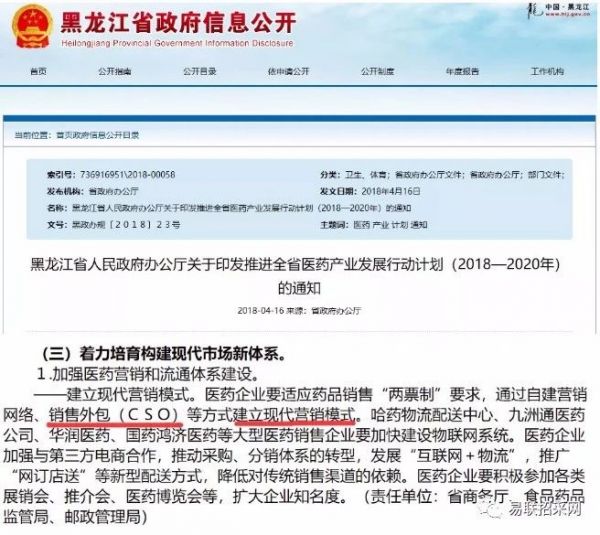 原来早在大同市人民政府鼓励药企开咨询公司代开发票之前(市政府责成药企,办咨询公司开票),黑龙江省政府就已发文明确药企可通过自建营销网络、销售外包等方式建立现代营销模式。