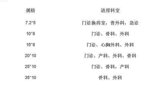 各种规格适用的科室