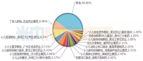在2016年中国城市零售药店终端儿科用药中成药TOP20品牌格局中,华润三九子公司华润三九(枣庄)药业的小儿感冒颗粒以8.3%的比例排位第二,华润三九(郴州)制药的小儿止咳糖浆以3.17%的比例排位第六,两款产品合计份额11.47%,在整个儿科中成药大类中位居首席。