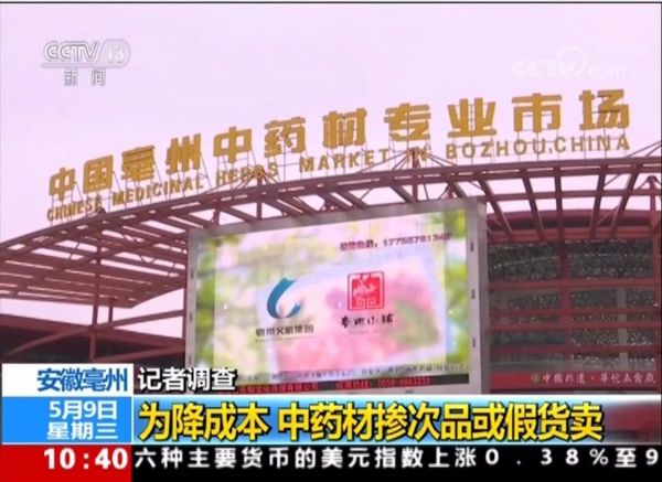 5月9日,央视《新闻直播间》对全国最大的中药材集散地安徽亳州进行重点报道,曝光“掺假”中药材问题。